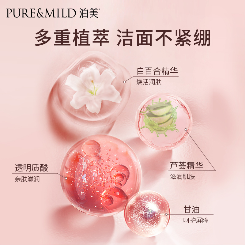 叠加淘金币到手47.52,加赠起泡网!泊美生机悦润洗面奶女深层清洁毛孔泡沫保湿,超赞~