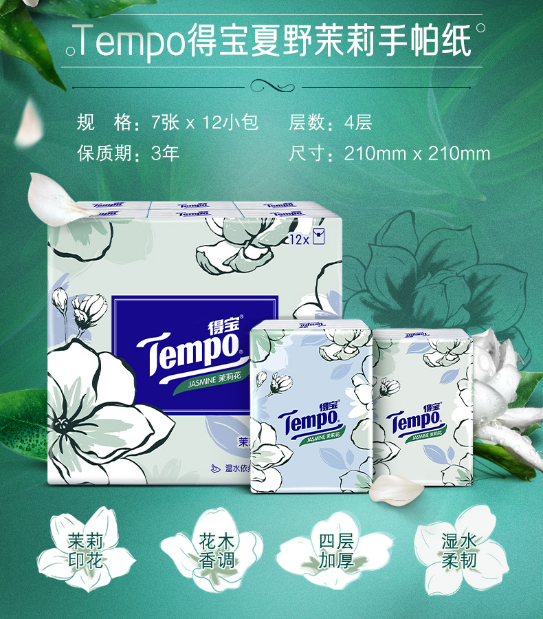 点击购买,让Tempo得宝茉莉香手帕纸,成为你生活中的小确幸! 🌸